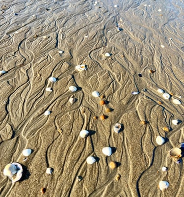 Die beim Wandern hinter mir zurückgelassenen Fußspuren im Sand werden von Wind und Wasser nach jedem Schritt rasch wieder verwischt.